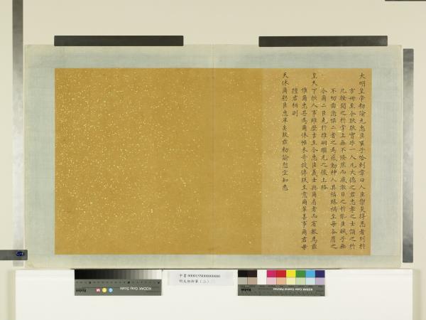 | 釋文 | (朱書)大明皇帝勅諭元忠臣蠻子哈剌章曰。人臣禦災捍患者。列於方冊。至今耿耿。實非一人。凡大德之君。忠孝之士。誦之於几按。閱之於掌上。無不倐然而感激。目之於亂臣賊子。無不切齒忿恨。二者之為感動神人。其福臻禍至。每各膺之。今爾二臣克於推嗣繼元之後。上格皇天。下欣人事。雖歷古至今。忠臣義士。與爾肩者。而有數焉。兹維爾忠甚。為爾休帖木哥旋。傳朕至意。爾輩善事爾君。毋擅君柄。則天休爾躬。臣忠畢矣。故兹勅諭。想宜知悉。(楷書釋文同上)。 |