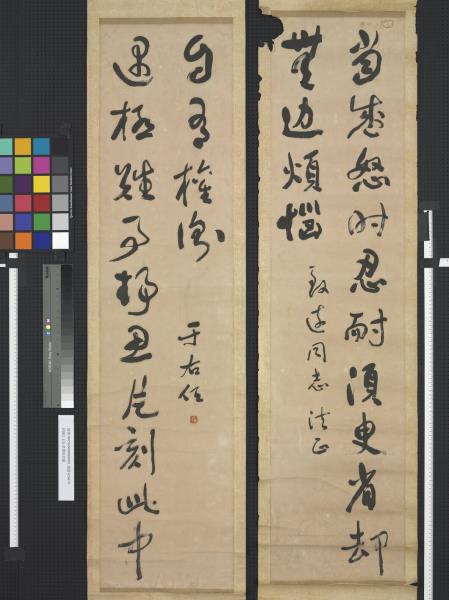 | 參考書目 | 〈民國于右任草書格言聯 軸〉,收入何炎泉、林宛儒主編《自然生姿態-于右任書法特展》(臺北:國立故宮博物院,2017.06),頁164-165、310。 |