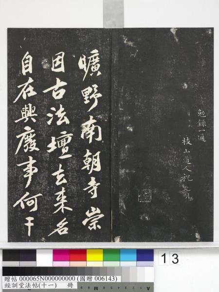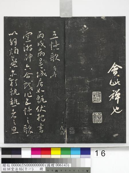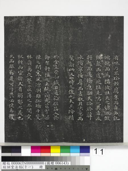 〈經訓堂法帖(十一) 冊 明祝允明臨黃庭經〉,收入何炎泉主編《毫端萬象-祝允明書法特展》(臺北:國立故宮博物院,2013.01),頁352-354、381。