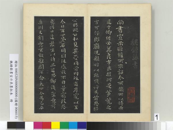 魏鍾繇書宣示表墨拓本 冊 鍾繇宣示表 Ink Rubbing of Wei Dynasty Zhong You's Declaration: Declaration |