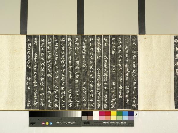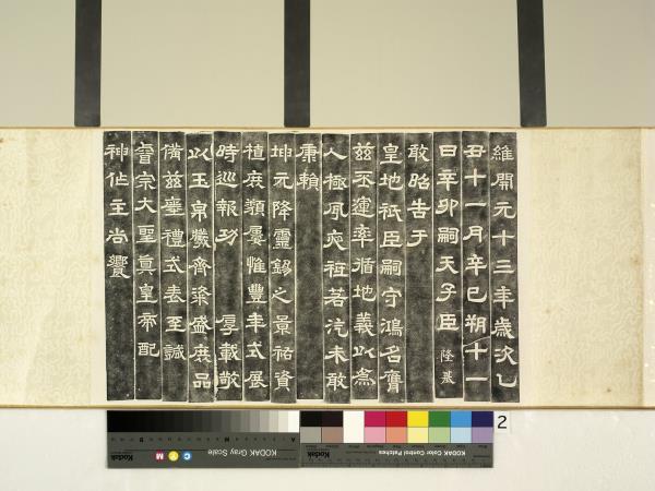 1.王耀庭,〈唐玄宗禪地祇玉冊(拓本)〉,收入王耀庭主編,《傳移模寫》(臺北:國立故宮博物院,2007年初版),頁104。