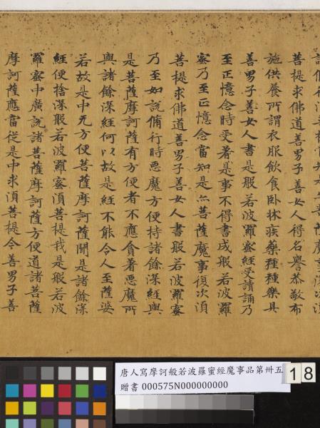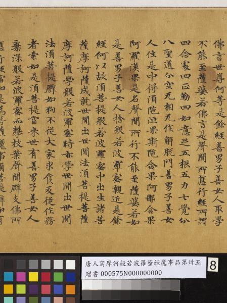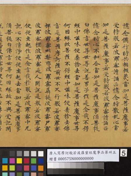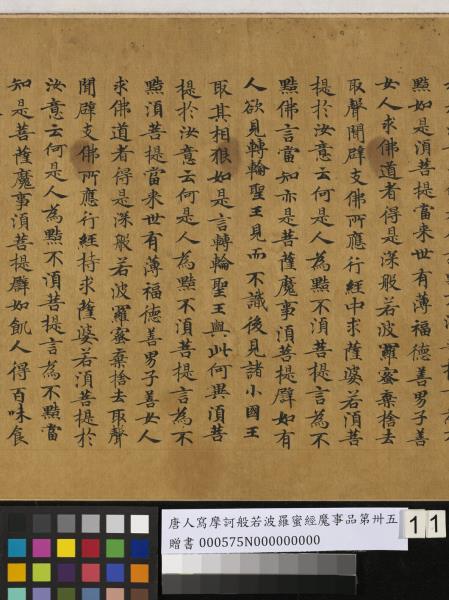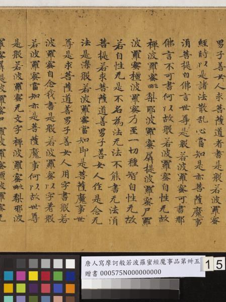 唐人寫摩訶般若波羅蜜經魔事品第卌五 卷 Handwritten Copy of "Hindrances", Fascicle Forty-Five of the Large Perfection of Wisdom (Pañcaviṃśatisāhasrikā Prajñāpāramitā) Sutra by a Tang Dynasty Calligrapher |