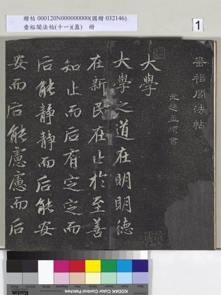 品名 垂裕閣法帖(十一)(盈) 冊 元趙孟頫書大學