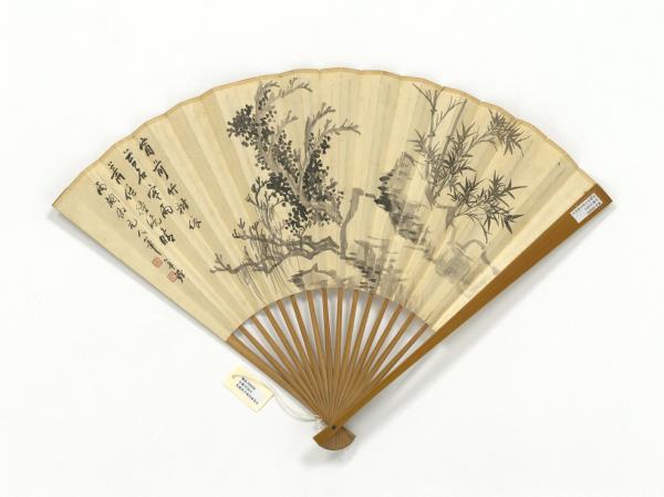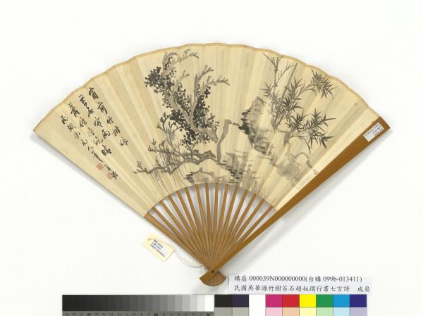 民國吳華源竹樹苔石趙叔孺行書七言詩 成扇 趙叔孺行書七言詩