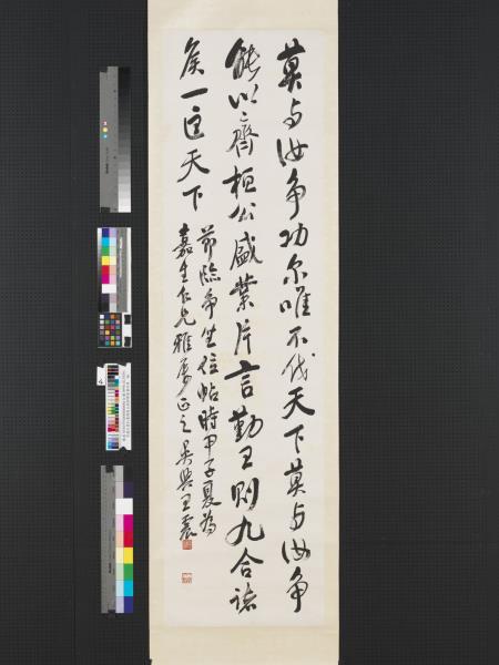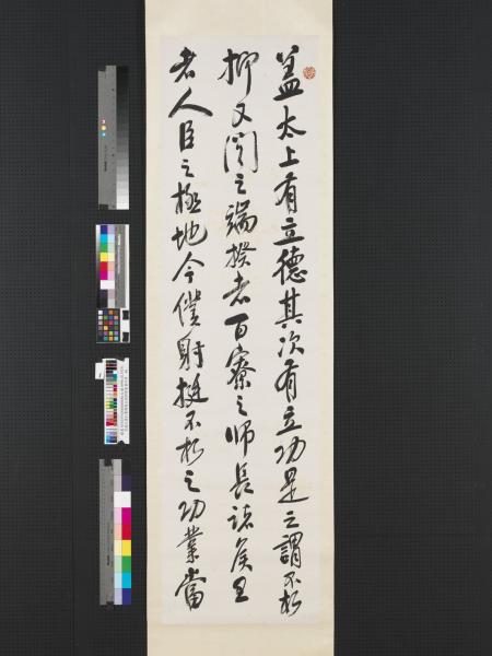 | 釋文 | 蓋太上有立德。其次有立功。是之謂不朽。抑又聞之。端揆者。百寮之師長。諸矦王者。人臣之極地。今僕射挺不朽之功業。當人臣之極地。豈不以才為世出。功冠一時。挫思明跋扈之師。抗迴紇無猒之請。故得身畫淩煙之閣。名藏太室之廷。吁足畏也。然美則美矣。然而終始難。故曰。滿而不溢。所以長守富也。高而不危。所以長守貴也。可不儆懼乎。書曰。爾唯弗矜。天下莫與汝爭功爾。唯不伐天下。莫與汝爭。能以齊桓公盛業片言。勤王則九合諸侯一匡天下。節臨爭座位帖。時甲子(西元一九二四年)夏為嘉生仁兄雅屬正之。吳興王震。 |