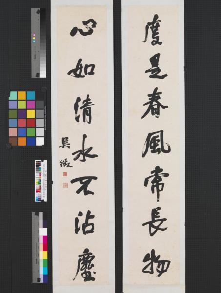 吳徵七言行聯。(上聯)。吳徵七言行聯。(下聯)。 |