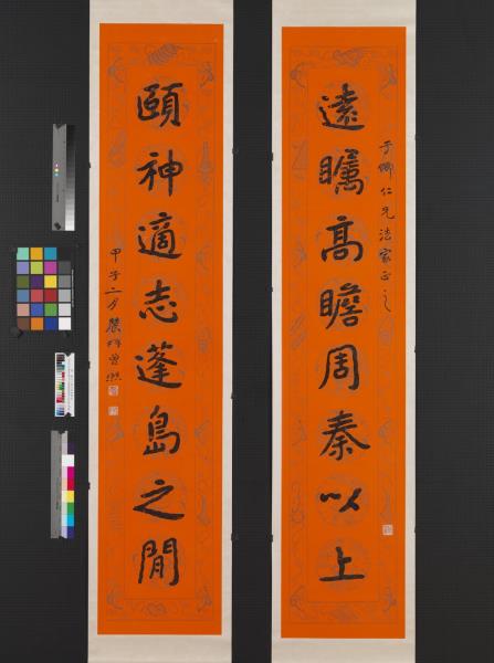 遠矚高瞻周秦以上。頤神適志蓬島之間。于卿仁兄法家正之。甲子(西元一九二四年)二月農髯曾熙。 |