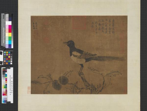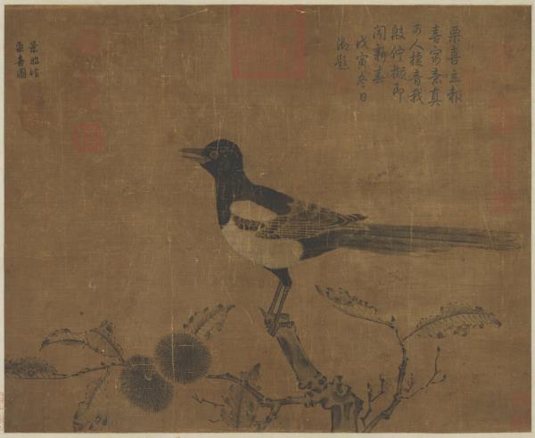畫板栗、喜鵲,構圖雖簡單,仍用心經營。