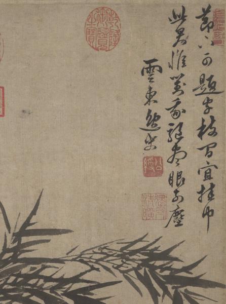 節下可題字。枝間宜挂巾。此君惟對我。驅盡眼前塵。雲東逸史。 |
