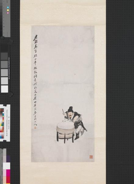 | 作者款識 | 王震 印記 | 本幅 | 君貽屬寫祢正平搥鼓。問意何取。笑不答。時庚戌(西元一九一0年)春。白龍山人。 | 草書 | |||||