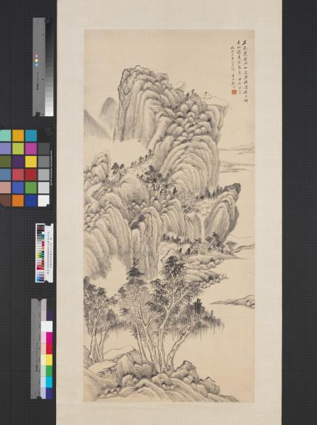 | 作者款識 | 顧澐 印記 | 本幅 | 石氣蒸成雨。山嵐盪作雲。敢云師造化。竊喜寫氤氳。甲午(西元一八九四年)秋九月。臨西廬老人真蹟。若波顧澐。 | 行書 | |||||