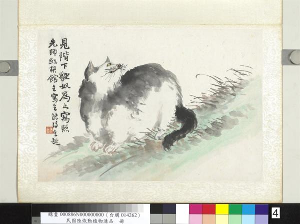 見階下狸奴為之寫照。先師紅梨館主寫生能得其趣。 |