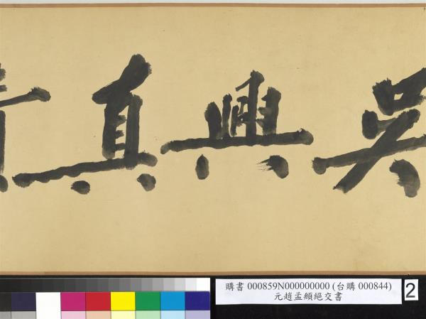 松雪真蹟。石翁珍藏。孟都拜訪。希世觀光。中華民國五十六年(西元一九六七年)丁未六月顧毓琇一樵敬題。 |