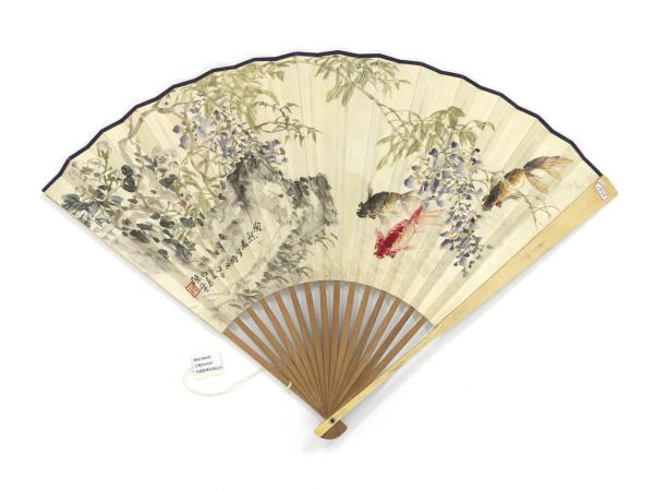 民國陳摩紫藤金魚金夢石趙雲壑袁培基陳摩合作花鳥 成扇 |