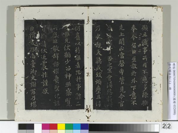 | 釋文 | 齊侍中王僧虔書。臣僧虔啟。劉伯寵陶瑾。稱勅二岸雜事。悉委臣判。聖恩罔已。獎使入效。斯實臣下駈馳至願。且職事所司。不應多陳。雖奉今旨。臣豈敢於外下意。不先上聞。正當磬率管見。令官長啟。審可否之宜。會須恩裁。此乃更亂天聽。或致煩壅。且得仍舊。以待能者。恐於事體二三。惟允伏願。少留神照。察覽所啟。非敢辭務。懼塵聖化。謹冒輸請。伏追震怍。謹啟。(以上為劉伯寵帖;陳情帖)。臣僧虔啟。南臺御史謝憲。乃堪駈使。臣門義舊。粗是所悉。統內新故雜米數十萬斛。實須督切。憲今請假在此。臣欲折以統攝。庶得速辨。其頻經督運。已有□□(前效)。謹以□(啟)聞。□(伏)願聽許。謹啟。(以上為謝憲帖;御史帖)。 |