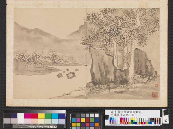 明陳淳畫山水 冊 喬木秋陰 |