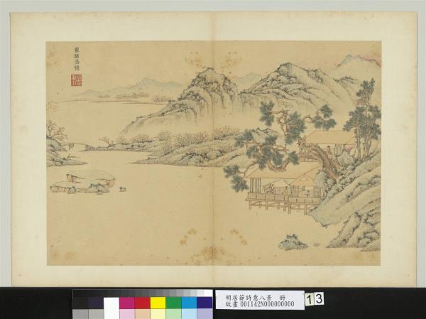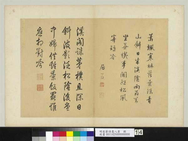 蕭颯寒林落葉深。青山斜日半溪陰。兩翁對坐無機事。閒聽松風寄短吟。居節。 |
