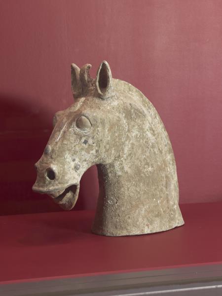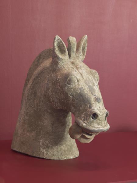 Earthenware funerary horse painted with unfired pigment |