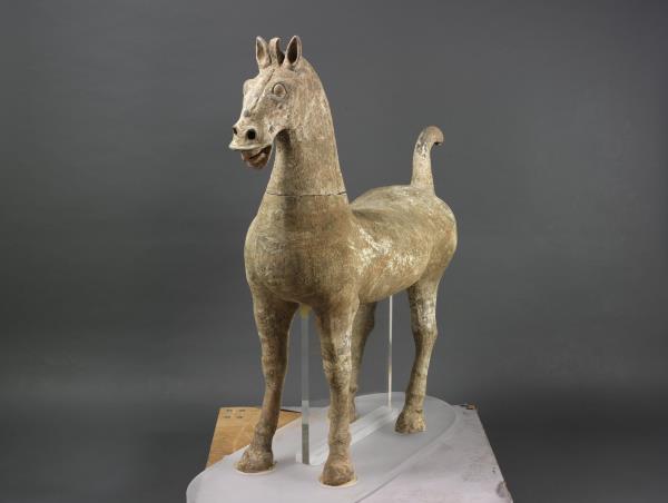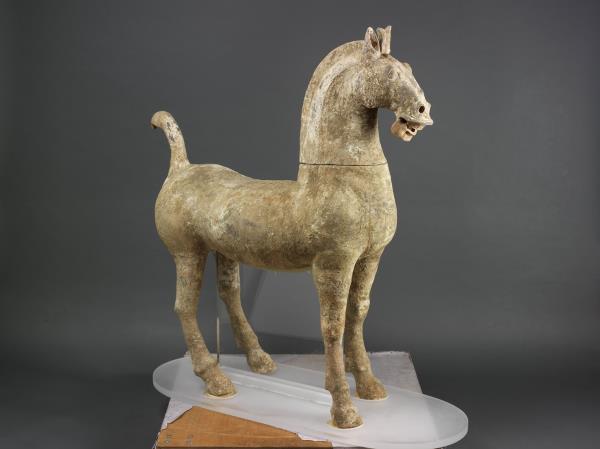 Earthenware funerary horse painted with unfired pigment