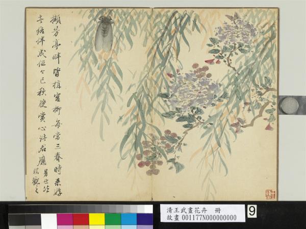 清王武畫花卉 冊 秋柳棲蟬