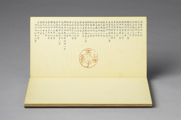 | 說明 | 院藏有五件樣式類同的黑地金漆龍紋屜匣,內皆置木殼面小冊頁一本,以及為數眾多的銅章。由於屜匣的蓋面都有金漆「金薤留珍」楷字,且其題銘後各自附有一小字,分別為「東」、「壁」、「圖」、「書」、「府」,可知這是五組成套的印章收藏。其中的木殼面小冊頁,即為該屜匣所收銅章的目錄,而本件小冊頁即為置於「壁」屜匣者。小冊頁作梵夾式,七開,木質封面有「金薤留珍 壁」填綠隸款。內頁除清高宗行書題銘「金薤留珍」四字外,還書有為該屜匣所收銅章品目項類,以及銅章鈐跡、印文釋文,其鈐跡與釋文上下相對,使人一望可知該屜匣所收銅印的概況,「壁」字匣主要收藏官印與私印,計二百二十三方。若是進一步取閱「東」字號小冊頁的乾隆十六年(1751)清高宗所作〈古銅章歌〉,以及「府」字號小冊頁中的大臣跋語並讀,便可瞭解這一套收藏的緣起,實因於乾隆皇帝命令臣下整理編次內府所收的前代印章。古代銅玉印之為收藏的品項,大致可追溯至宋代的《宣和印譜》,但因無實物可徵,故真實性仍有待商榷。至明代,顧從德為羅王常(製墨家羅小華之子)家藏古印刊行的《集古印譜》問世以後,才真正讓古代印記成為收藏的重要品項。影響所及,除了篆刻家多以《集古印譜》所刊為臨模範式外,人們也會想要收藏《集古印譜》中所刊的印章實物,院藏乾隆皇帝下旨編次的〈虹文薈古〉套印,就是這種影響下的產物。進一步細察「金薤留珍」諸字號小冊頁中目錄編次,其以官印為始,私印為次,並從中分別官職、姓氏,實是上追了《集古印譜》編次分類的方式。如此一來,我們更可以瞭解這一套收藏活動的性質,不只是整理內府收藏,而且還援引了明代以來的銅玉古印收藏傳統。 |