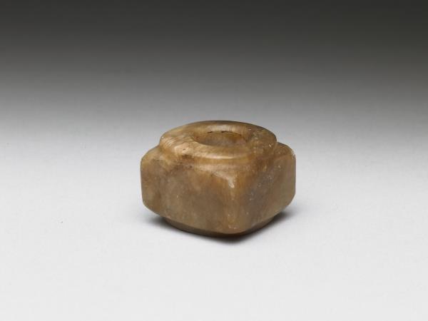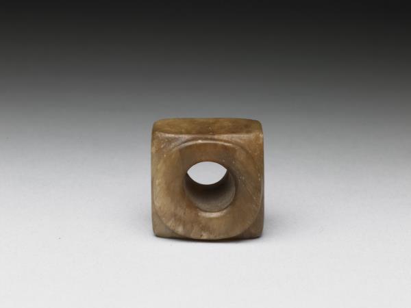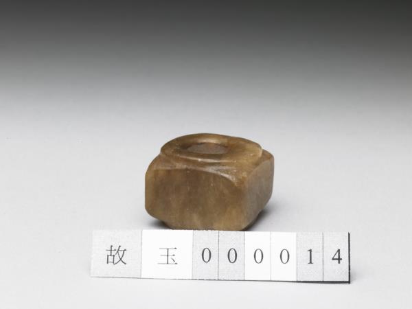玉質,淺赭色,琮形而小,或作佩飾器。