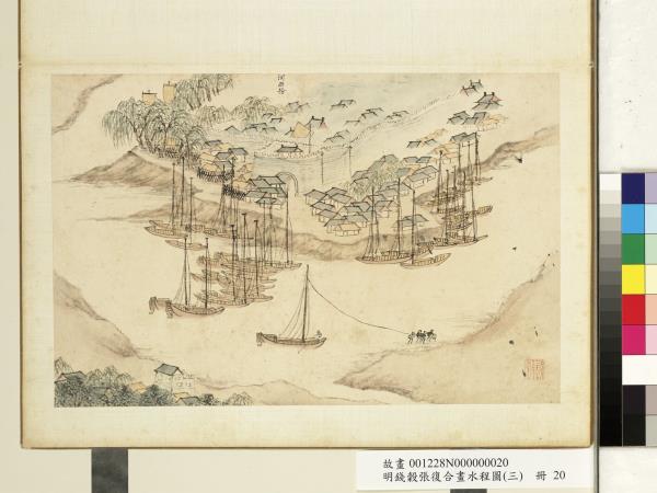 | 參考書目 | 林麗江,〈明錢穀張復合畫水程圖(三) 冊 河西務〉,收入林麗江、何炎泉主編《寫盡繁華-晚明文化人王世貞與他的志業》(臺北:國立故宮博物院,2022.10),頁232-247。 |