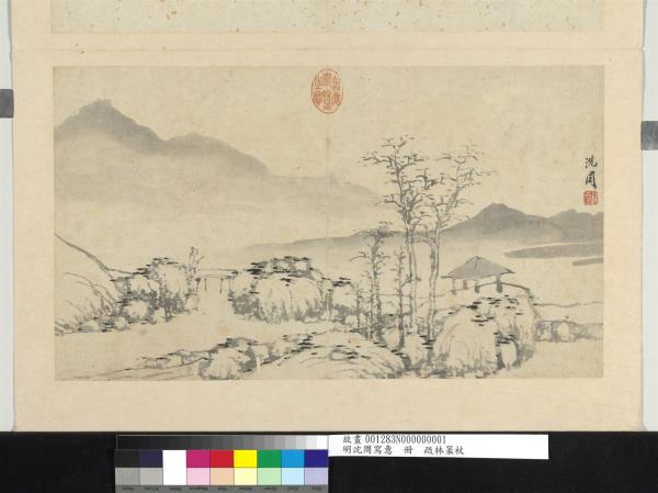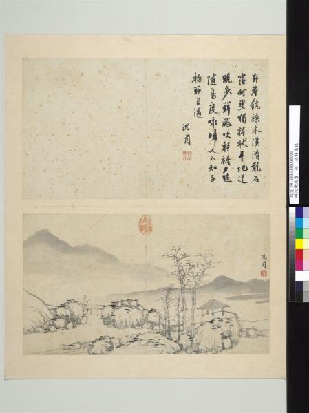 1.江兆申,〈沈周疏林亭子 扇〉,收入國立故宮博物院編,《吳派畫九十年展》(臺北:國立故宮博物院,1975年初版,1976年再版,1981年三版),頁298 - 299。
