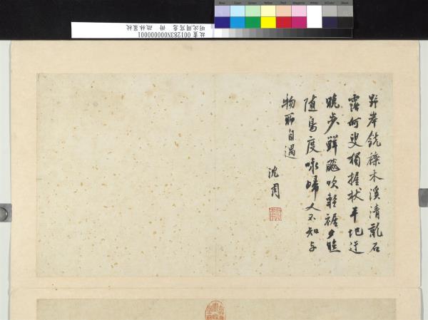 何炎泉、陳階晉、陳韻如,〈明沈周寫意 冊 疏林策杖〉,收入《明四大家特展-沈周》(臺北:國立故宮博物院,2014.01),頁146-161、322-323。