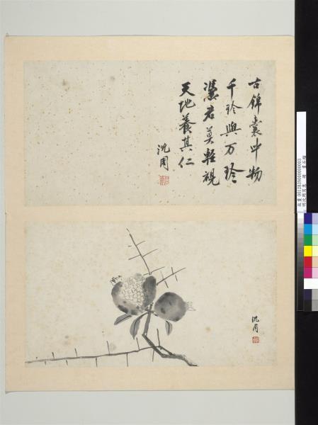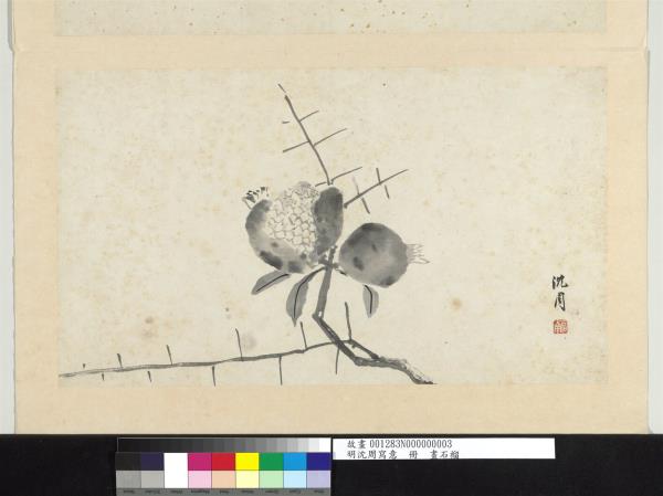 | 參考書目 | 何炎泉、陳階晉、陳韻如,〈明沈周寫意 冊 畫石榴〉,收入《明四大家特展-沈周》(臺北:國立故宮博物院,2014.01),頁146-161、322-323。 |