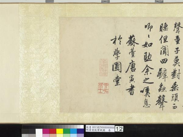正德戊辰(西元一五0八年)。畫於學圃堂。晉昌唐寅。 |