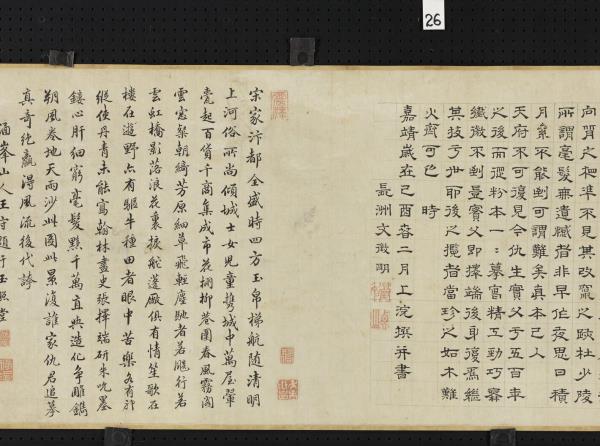 時嘉靖歲在己酉(西元一五四九年)春二月上浣撰并書。長洲文徵明。 |