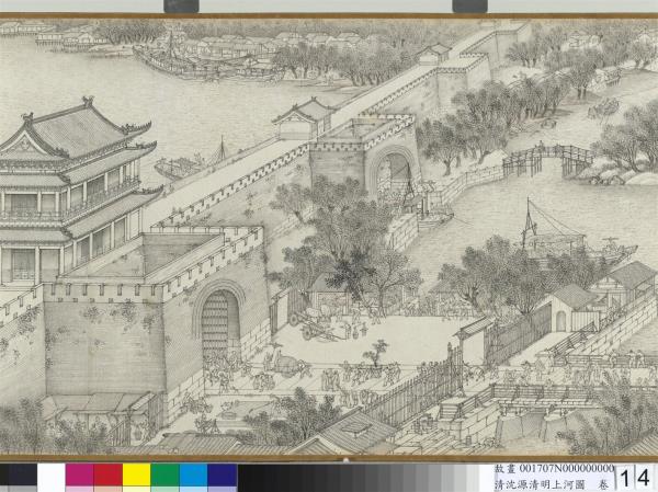 1.童文娥,〈明仇英清明上河圖〉,收入童文娥主編,《繪苑璚瑤-清院本清明上河圖》(臺北:國立故宮博物院,2010年四月出版一刷),頁186。