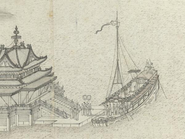 Shen Yuan, whose native place and years of birth and death are unknown, excelled at painting Buddhist subjects and also was good at landscapes and ruled-line subjects. He served the court during the Qianlong reign (1736-1795), and his earliest record of activity in the Qing Palace Workshop Archives mentions the first year of the Qianlong reign. Since most of his dated works are from around the tenth year of the Qianlong reign, and he once cooperated with Tang Dai (1673-1752) in illustrating the "Odes of Bin," Shen Yuan's period of activity was thus probably in the early Qianlong reign.