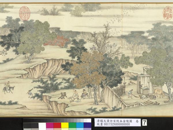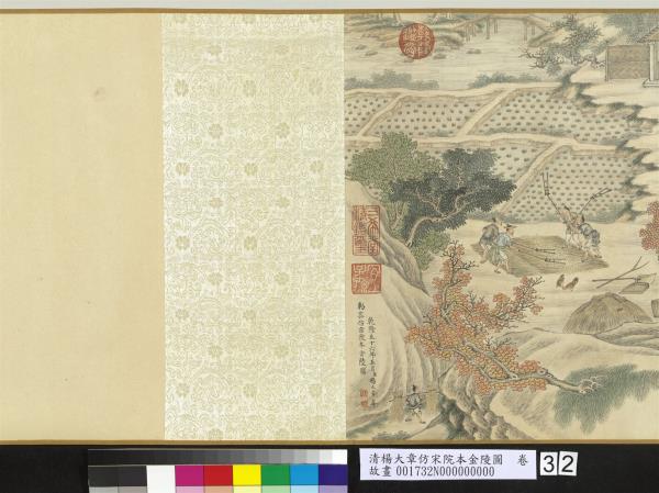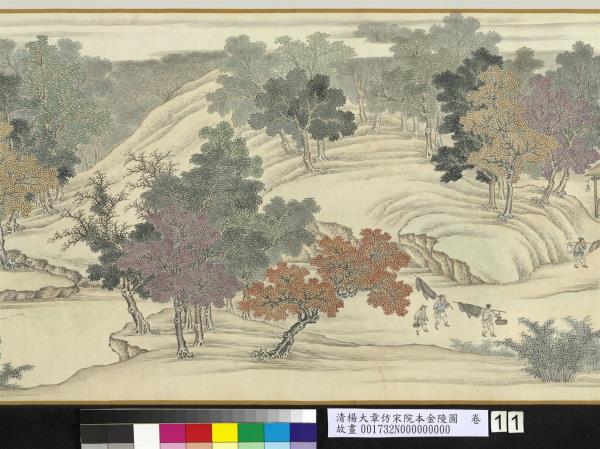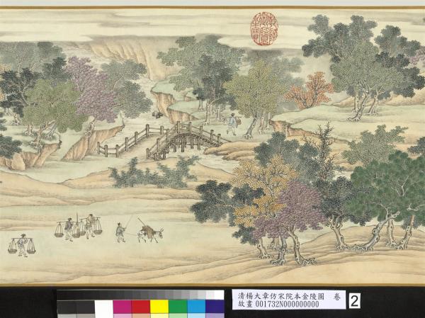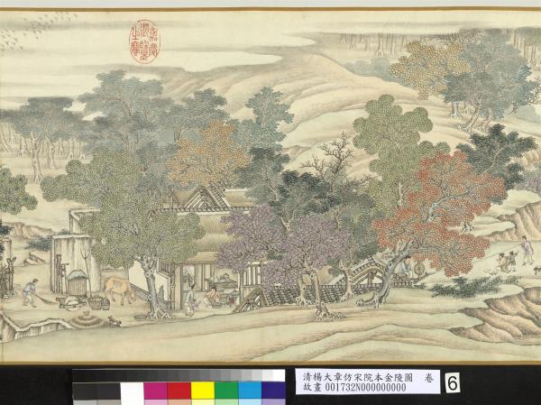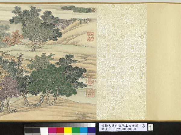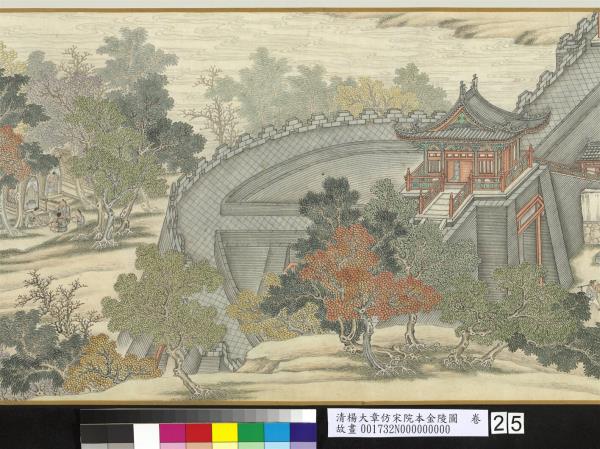 乾隆五十六年(西元一七九一年)五月。臣楊大章奉敕恭仿宋院本金陵圖。 |