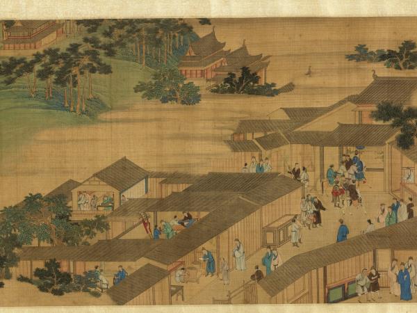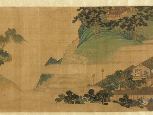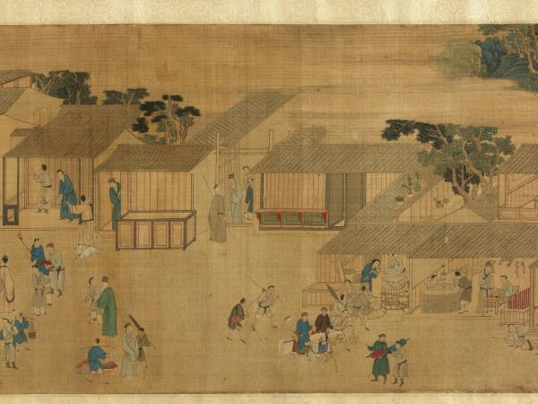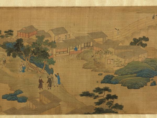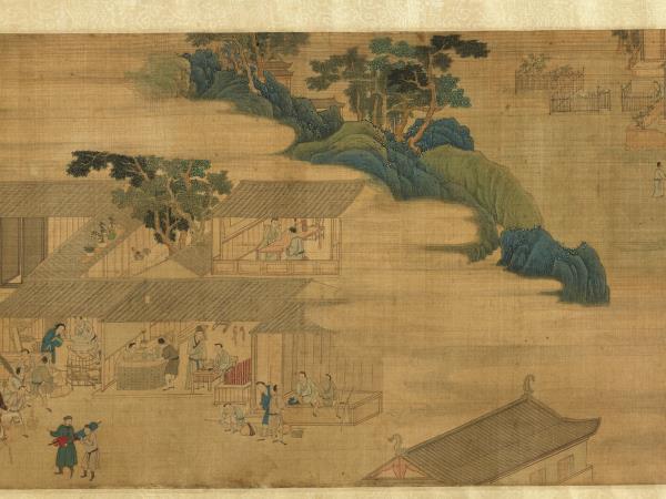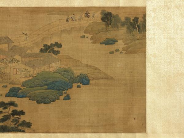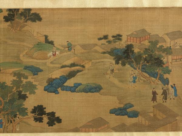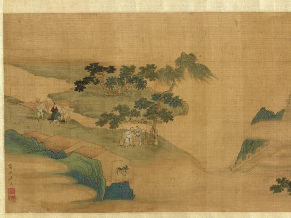 At the end of this scroll is the signature “Liang Heng of Lanshui,” which modern scholarship suggests as referring to the Qing painter Liang Heng of Fujian. Liang Heng, style name Dishu, is mentioned in records as being good at landscapes and figures, but few of his works have survived. The civil service examination system for selecting officials began in the Sui dynasty and became an institution in the Ming and Qing period. This work depicts the crack of dawn, where throngs check the exam pass list by firelight. Many have gathered at the announcement board, looking for their names. Those who failed are supported as they leave dejectedly, this work exquisitely expressing the yearning for an official career and the aspirations of fame among many scholars.