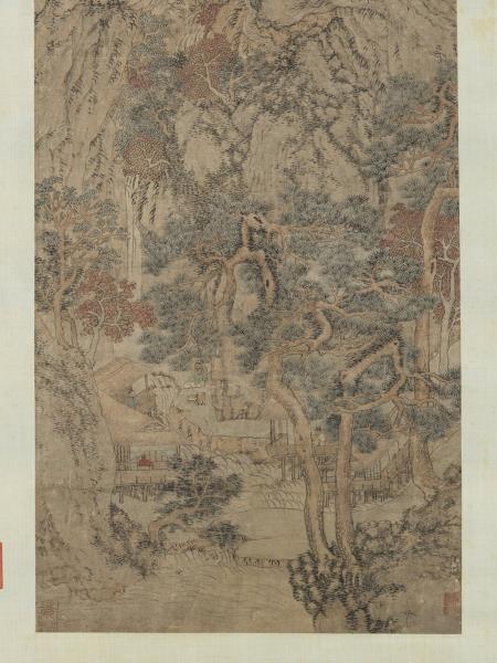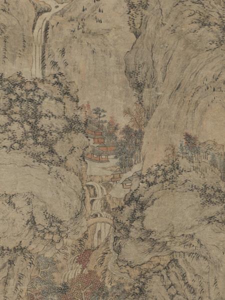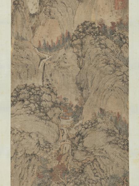 明文伯仁秋巖飛瀑 軸