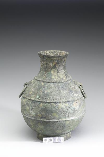 圓壺,鼓腹、圈足,肩上二獸面銜環。頸飾三角形紋,肩、腹飾弦紋。頸部有銘二行四字。