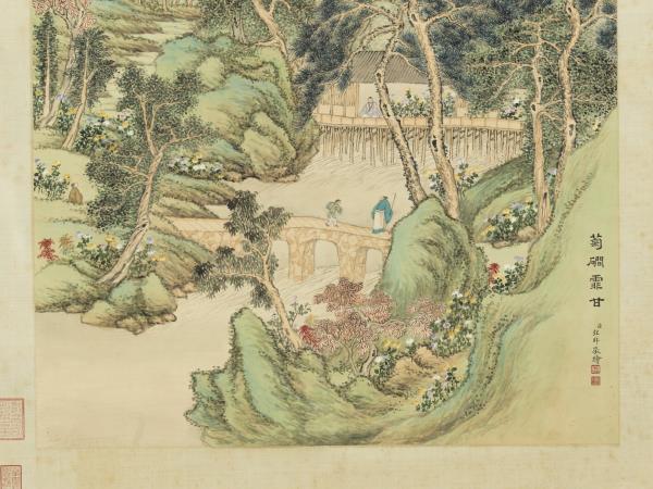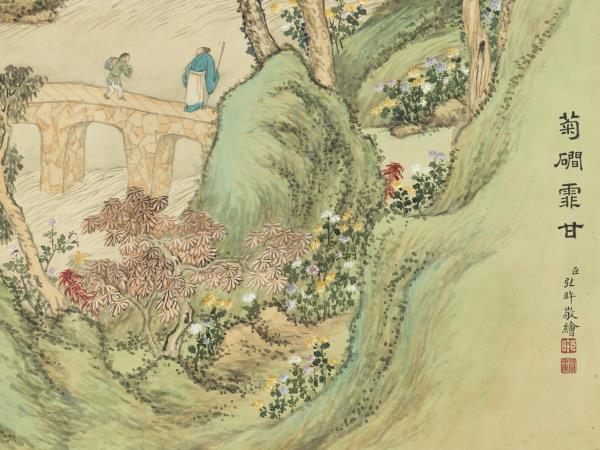 菊磵霏甘。(隸書)。臣弘旿敬繪。(楷書)。 |