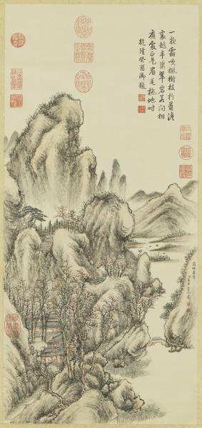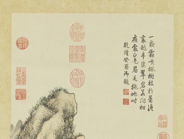 一夜霜吹楓樹枝。於蕭澹裏越丰姿。翠岩若問相應處。正是眉毛拖地時。乾隆癸酉(西元一七五三年)御題。 |