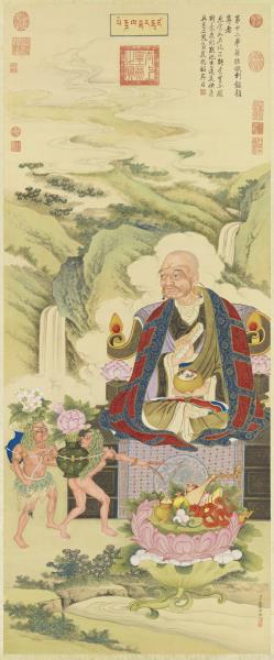 清丁觀鵬畫十六應真像(十二)第十二畢那楂拉拔哈喇錣雜尊者 軸