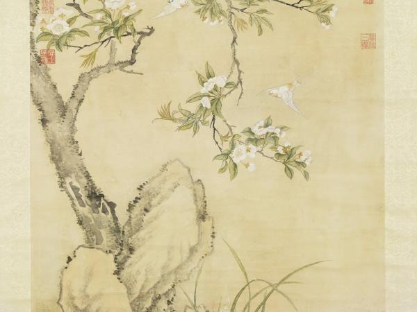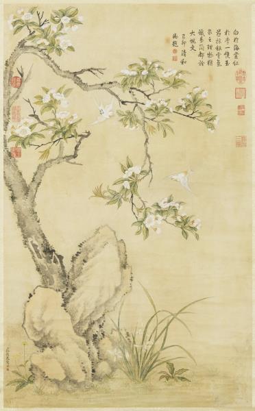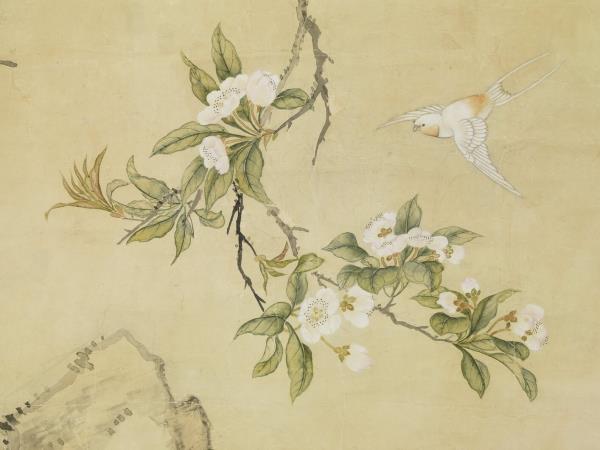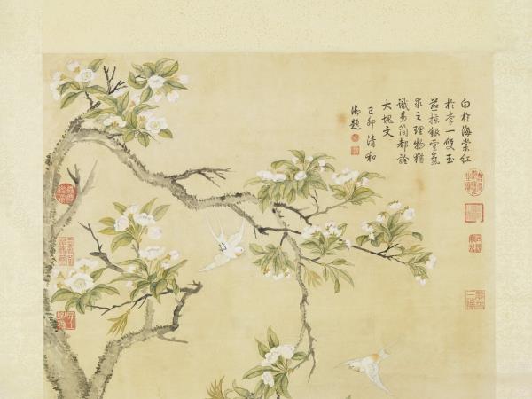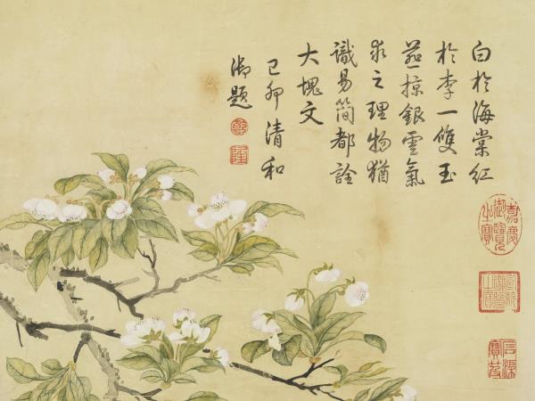 白於海棠紅於李。一雙玉燕掠銀雲。氣求之理物猶識。易簡都詮大塊文。己卯(西元一七五九年)清和御題。 |