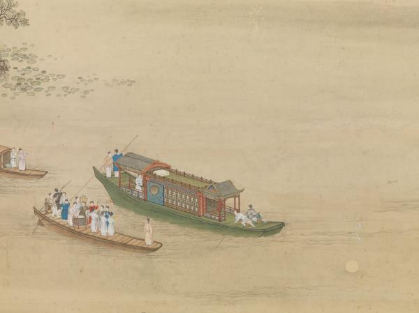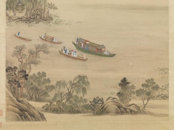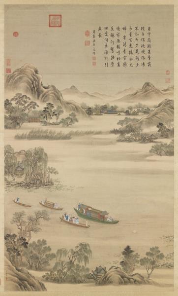月宇蘭漪暑氣藏。輕舟偶泛晩風涼。不知今夕是何夕。可愛天光接水光。蟬有清音宜静境。荷無豔味祗真香。鷗汀鷺渚縈廻處。間出漁歌引興長。月夜泛舟之作。 |
