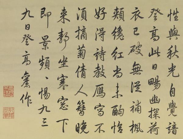 性與秋光自覺諳。登高此日暢幽探。荷衣已破無從補。楓頰纔紅尚未酣。恰好得詩教鴈寫。不須摘菊倩人簪。晚來靜坐寒窗下。即景頻頻惕九三。九日登高舊作。 |