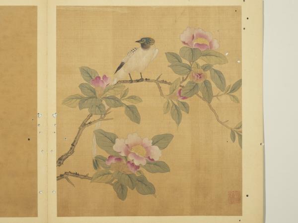宋錢選寫生圖 冊 茶花壽帶。國立故宮博物院,台北,CC BY 4.0 @ www.npm.gov.tw