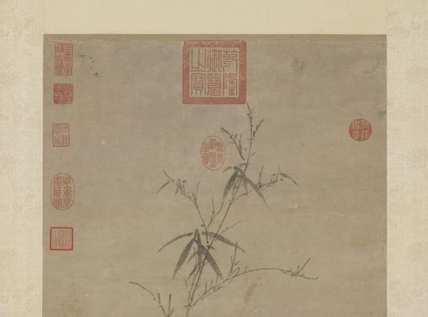 墨寫脩竹兩竿,高低相參,著葉無多,旁有一拳石相襯,全局清雅可人。畫成於至正七年(1347),時年六十八。