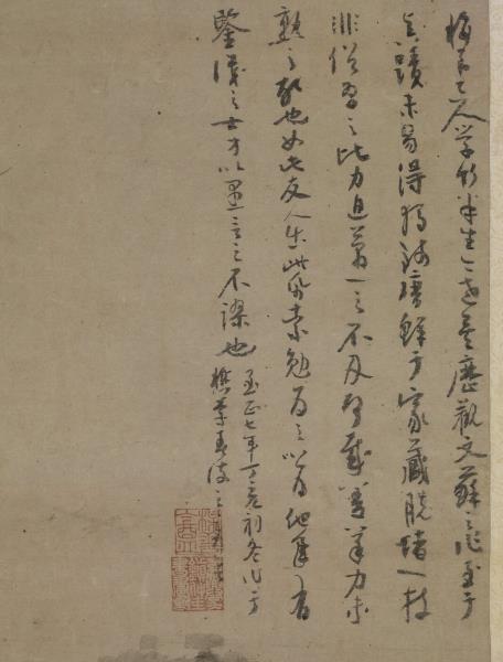 梅花道人學竹半生。今老矣。歷觀文蘇之作。至于真蹟未易得。獨錢唐鮮于家藏脫堵一枝。非俗習之比。力追萬一之不及。何哉。蓋筆力未熟之故也如此。友人出此紙索勉為之。以為他年有鑑識之士。方以愚言之不謬也。至正七年(西元一三四七年)丁亥初冬。作于檇李春波之客舍。 |