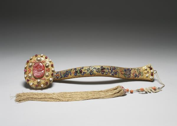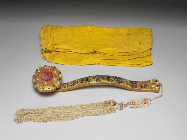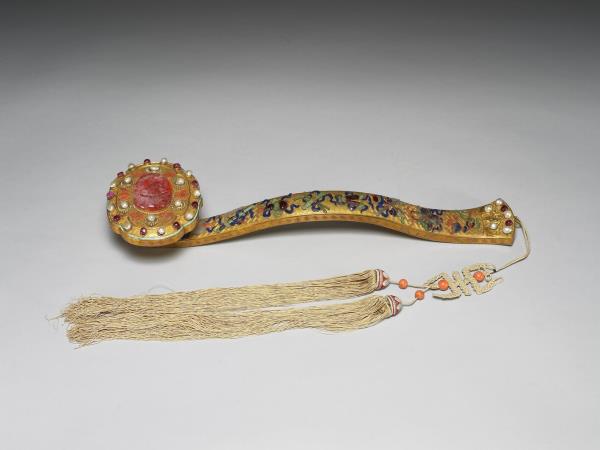 Gold ruyi scepter inlaid with gemstone and decoration of the Eight Immortals
