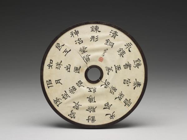 Carved wood mirror cover with Zhao Bingchong’s transcription of an inscription on a mirror of Tang period in clerical script