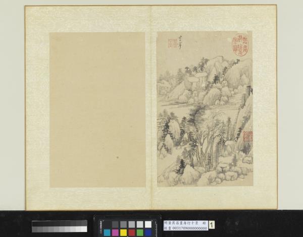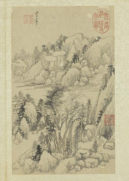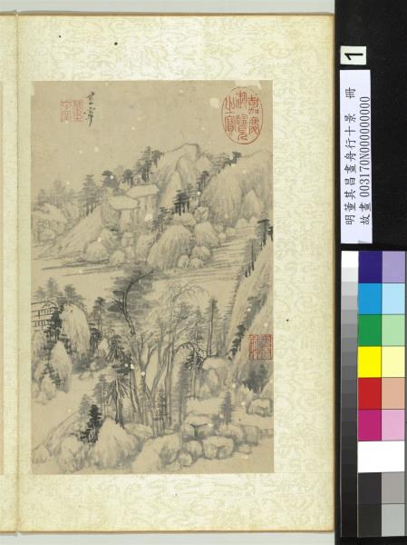 明董其昌畫舟行十景 冊 茂林疊嶂 Ten Sceneries from Travelling by Boats:A Dense Forest amidst Layer upon Layer of Mountain Ridges |